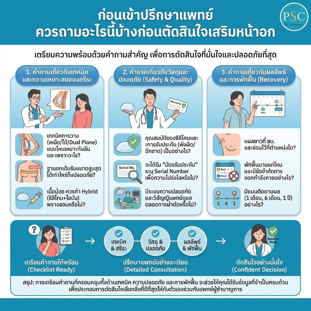 เสริมหน้าอกกับการตั้งครรภ์และให้นมบุตร มีผลกระทบหรือไม่ เสริมหน้าอกกับการตั้งครรภ์และให้นมบุตร มีผลกระทบหรือไม่ “อยากทำหน้าอกค่ะหมอ แต่ที่บ้านเบรกไว้ บอกว่าเดี๋ยวมีลูกแล้วจะให้นมไม่ได้ รอให้มีลูกก่อนค่อยทำดีไหมคะ?” นี่คือประโยคยอดฮิตที่สร้างความลังเลให้กับสาวๆ หลายคนที่กำลังวางแผนจะทำศัลยกรรมเสริมหน้าอก (Breast Augmentation) ครับ ความฝันที่อยากจะใส่เสื้อผ้าสวยๆ มีความมั่นใจในรูปร่าง มักจะถูกเตะสกัดด้วยความกังวลเรื่อง “สัญชาตญาณความเป็นแม่” กลัวว่าซิลิโคนจะไปทับท่อน้ำนม กลัวลูกจะดูดสารเคมีเข้าไป หรือกลัวหน้าอกจะพังยับเยินหลังคลอด วันนี้เราจะมาเปิดตำราทางการแพทย์ เพื่อไขข้อข้องใจกันแบบเจาะลึกและเข้าใจง่ายครับ ขอสปอยล์คำตอบไว้ตรงนี้เลยว่า “คนเสริมหน้าอก สามารถตั้งครรภ์และให้นมบุตรได้ตามปกติครับ!” แต่ในกระบวนการนั้นมีรายละเอียดทางกายวิภาคศาสตร์และเทคนิคของศัลยแพทย์ที่คุณต้องรู้ เพื่อการเตรียมตัวที่ถูกต้องและปลอดภัยที่สุดครับ ความลับของท่อน้ำนม และ “ตำแหน่ง” การวางซิลิโคน ความกังวลที่ว่าซิลิโคนจะไปขัดขวางการผลิตน้ำนมนั้น เกิดจากความไม่เข้าใจโครงสร้างของเต้านมครับ ธรรมชาติสร้างเต้านมของผู้หญิงมาให้ประกอบไปด้วย ต่อมน้ำนมและท่อน้ำนม (Mammary Glands & Lactiferous Ducts) ซึ่งจะอยู่รวมกันเป็นกลุ่มก้อนบริเวณใต้ผิวหนังและเชื่อมตรงไปที่หัวนม ในการผ่าตัดเสริมหน้าอก ศัลยแพทย์ตกแต่งที่มีความเชี่ยวชาญ จะมีเทคนิคการ “ซ่อน” แท่งซิลิโคนเพื่อไม่ให้ไปยุ่งเกี่ยวกับระบบผลิตน้ำนมเหล่านี้เลยครับ โดยตำแหน่งยอดฮิตที่ปลอดภัยที่สุดคือ: การวางซิลิโคนใต้กล้ามเนื้อ (Submuscular หรือ Dual Plane): นี่คือเทคนิคที่ดีที่สุดสำหรับว่าที่คุณแม่ครับ หมอจะสอดซิลิโคนเข้าไปไว้ “ใต้ชั้นกล้ามเนื้อหน้าอก […]