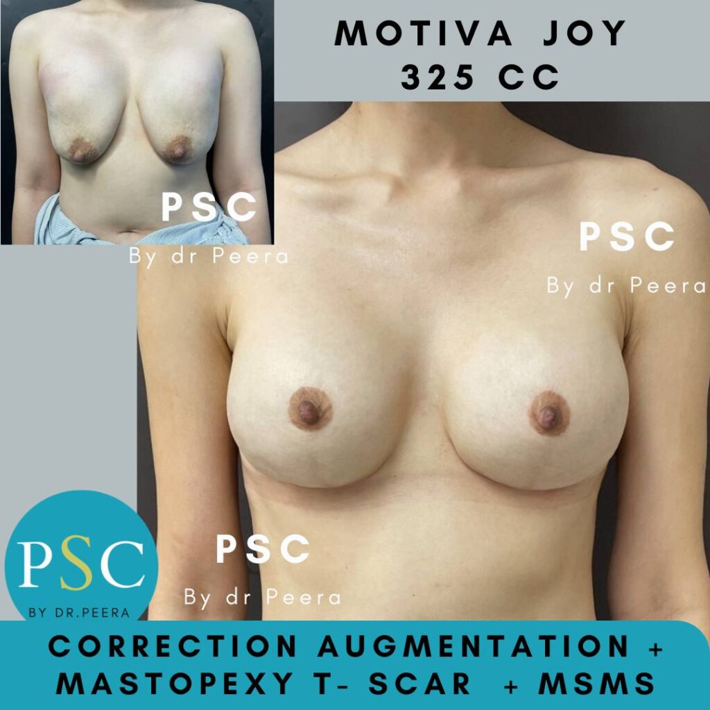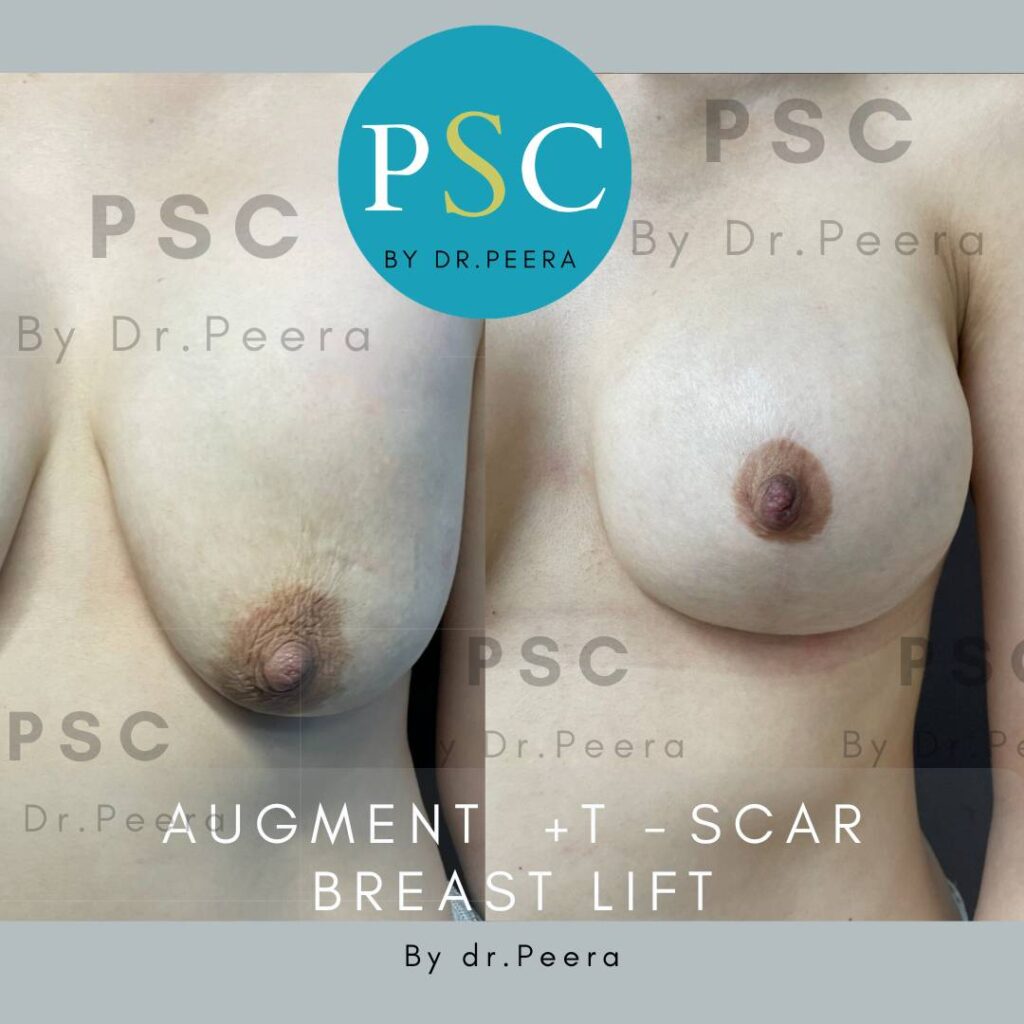 在单个手术中同时实现乳房增大和提升。利用泪滴形植入物,这种方法涉及乳晕周围的疤痕和垂直切口,避免了在乳房底部进行水平切口(倒T形切口)的需要。